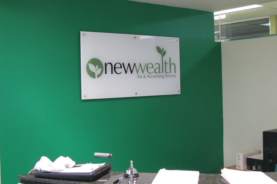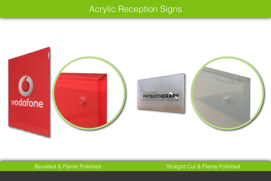 1 x 10mm thick Acrylic Reception Sign with Digital Print (900mm W x 500mm H) [Includes 4 Stand Offs] - Bevelled & Flame Polished Edges