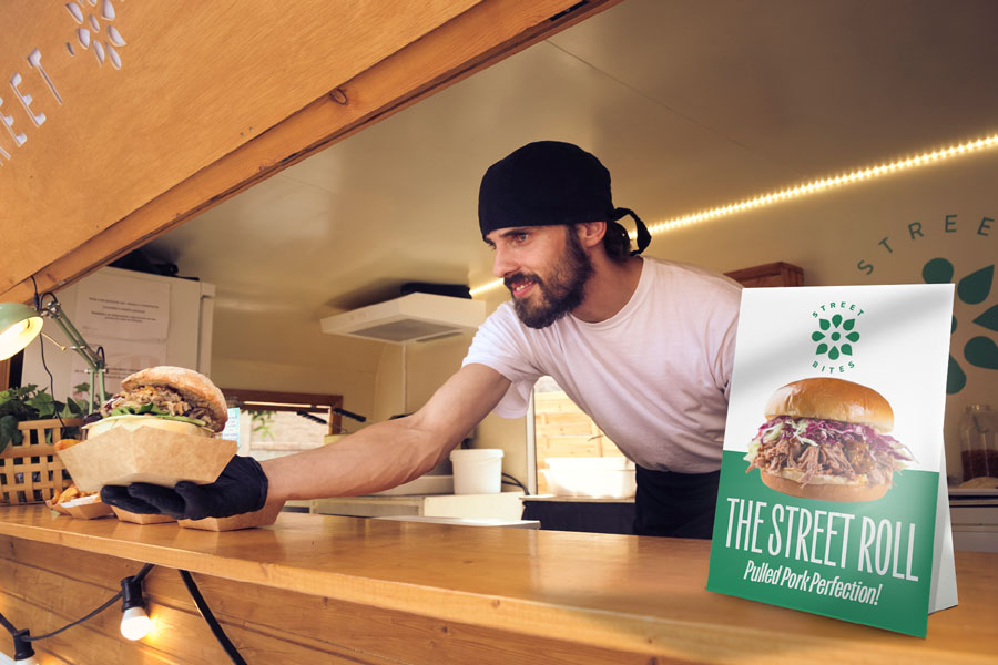 Each Counter Card comes with a sturdy strut that keeps your sign upright and stable. It attaches to the back using velcro straps, making them super simple to set up instantly. The front face can be cut to custom shapes, allowing you to create bold, eye-catching designs that align with your branding.