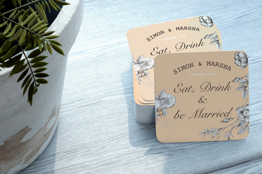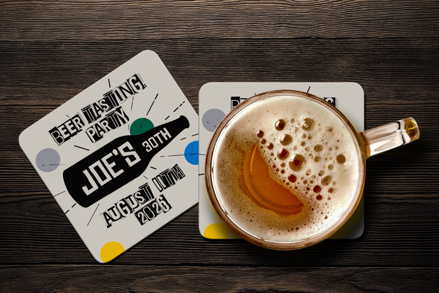 Our Coasters are made from 390gsm absorbent beer matt board, a durable and high quality material designed to soak up condensation while staying strong during use.