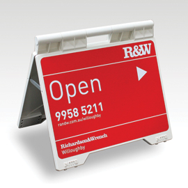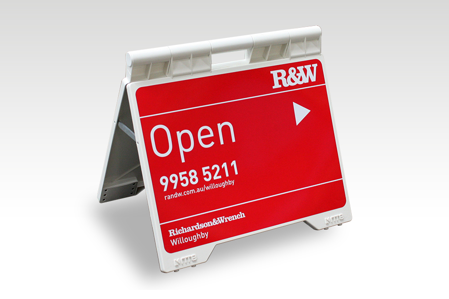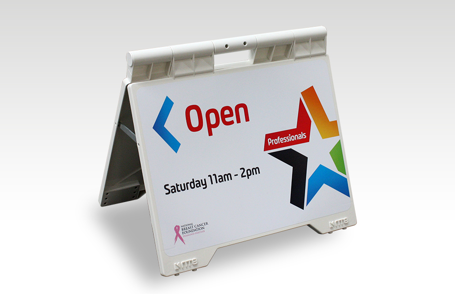 The Evarite A-Frame has been designed as the perfect directional sign for real estate agents to advertise open house inspections. It’s the same size as the Endurosign A-Frame with a larger handle for easy grip. The Evarite A-Frames are lightweight and compact, made from high impact resistant plastic they are pretty much indestructible - and come with a 5 year warranty!