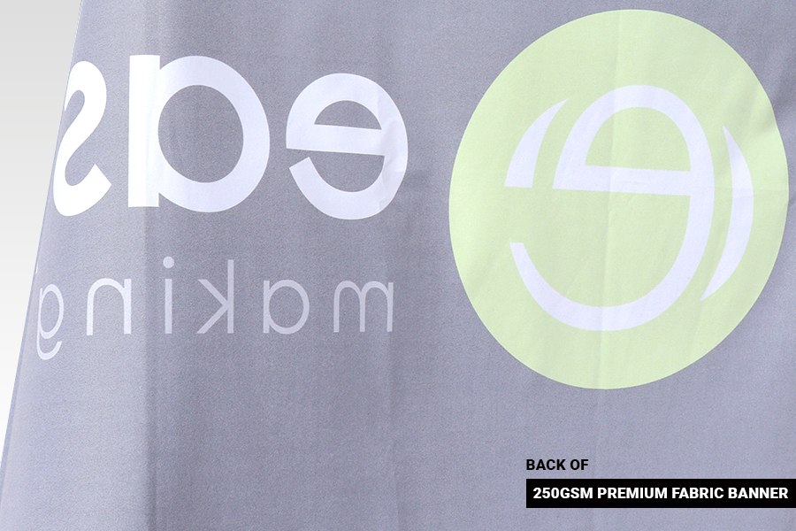 The Economy Fabric Banner is a 120gsm polyester material with a gloss sheen. As it is a thinner material it has some transparency which allows better ink bleed through, so the print will be seen in reverse on the other side. The Premium Fabric Banner is a 250gsm polyester material with a matte finish. It is a thicker material with minimal transparency so it has very little ink bleed through. Both materials are suitable for indoor and outdoor use, however we recommend the Premium material for indoor use because of the matte finish and lack of transparency which reduces lighting glare and provides better indoor photographic results.