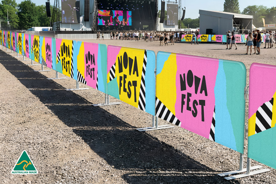 10 x 2150mm W x 990mm H Interlocking Crowd Control Barrier Covers with Single Sided Print