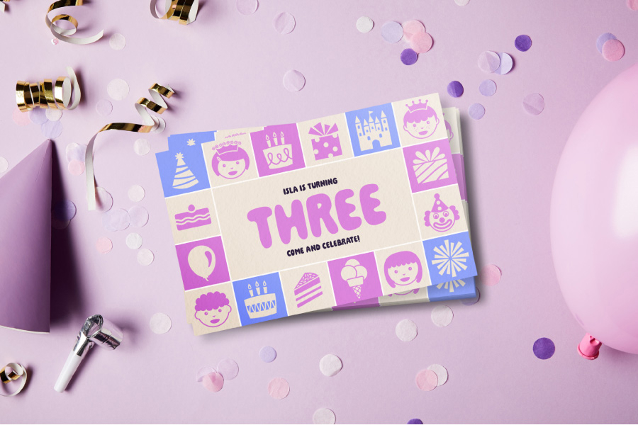 250 x A5 (148mm W x 210mm H) Invitations Printed Single Sided Full Colour on 360gsm Artboard with Matte Lamination Front Side