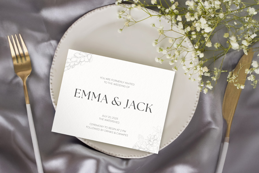 Our Invitations are printed on our state-of-the-art Ricoh Pro C9500, capable of producing crystal-clear print at very small sizes, and are available in custom sizes with a wide range of material and lamination options.