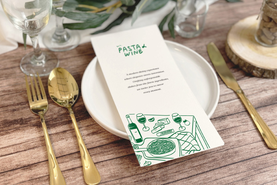Our Matte Laminated Menus are a perfect choice if you’re seeking a premium finish! This lamination provides a modern aesthetic and blocks out any shine. The Matte Lamination creates a subtle finish that may make some colours appear slightly duller. They also contrast nicely with gloss plates and utensils, giving your menus the ultimate wow factor! Our lamination options are splash-proof and easy to clean.