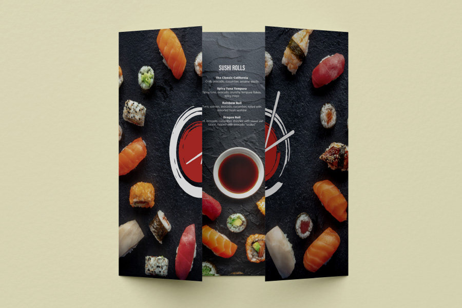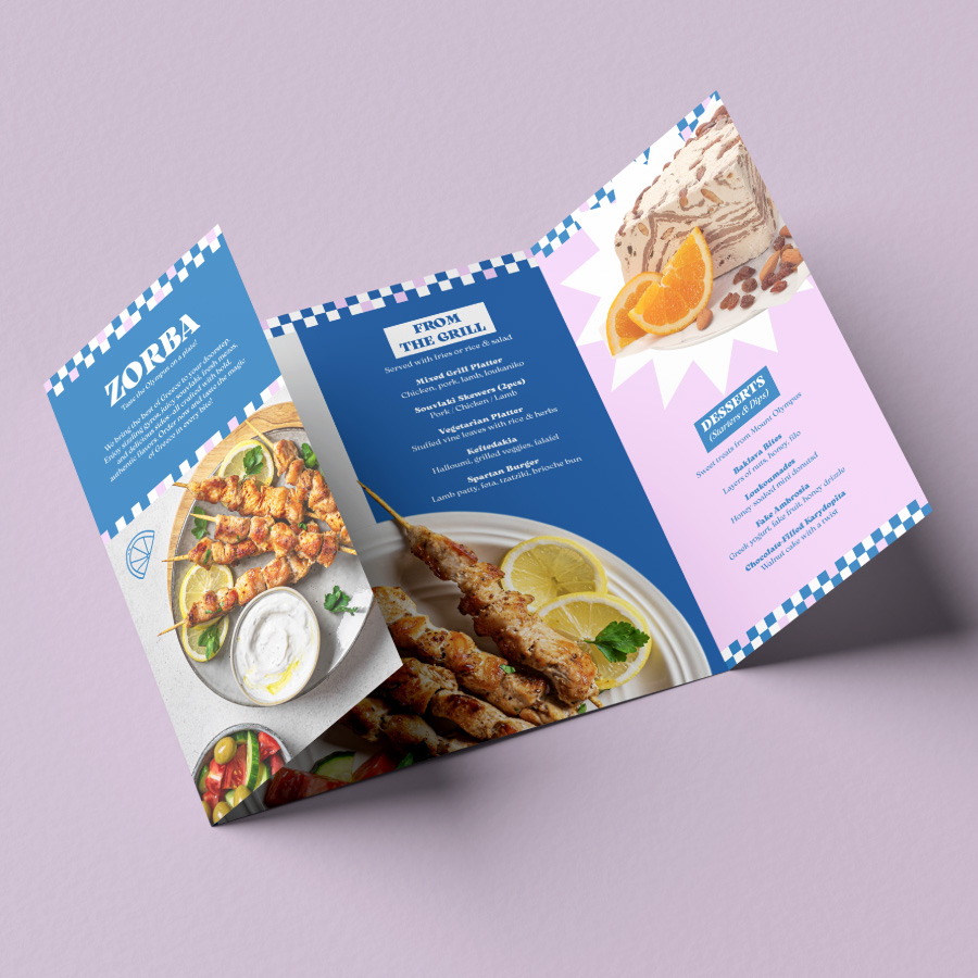 100 x DL Z-Fold (A4 folded to DL) Premium Menus supplied on 250gsm Paper with Gloss Lamination