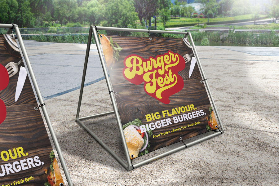 Make your message stand out with our Monsoon A-Frames! Designed for durability, these vibrant Vinyl and Vinyl Mesh Banners stand up to harsh weather while keeping your brand sharp and clear. The Banners are attached using bungee cords to the robust aluminium frame which is available in two sizes to suit your needs.