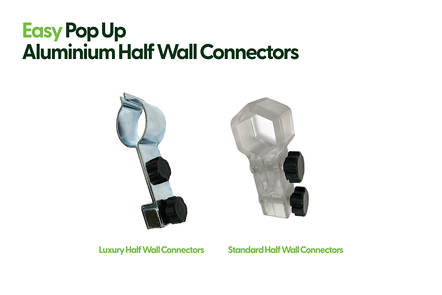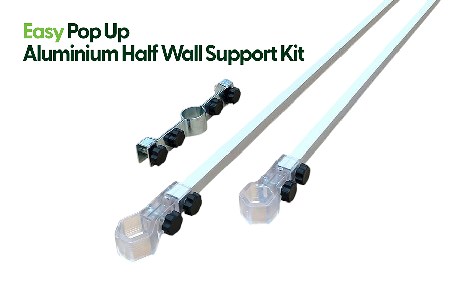 2 x 3 metre support bars (one end of each bar is inserted into the clear connector on the corner post and the other end is inserted into the metal centre connector)
