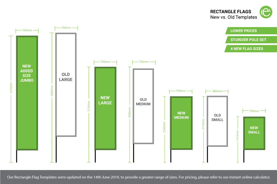 Rectangle Flags up to 2.16m, and