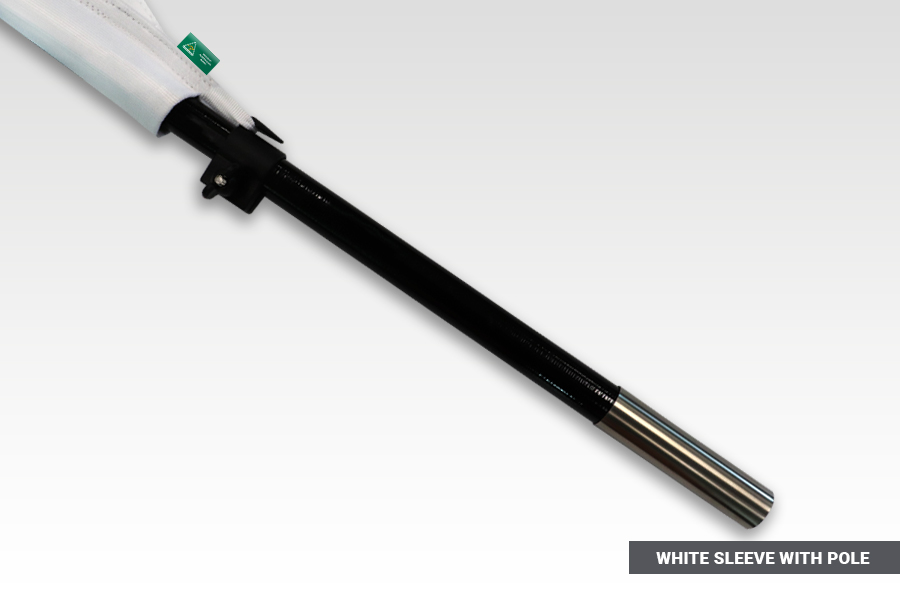 The sleeve is the pocket that that pole slides into and it created using a strong fabric. We can use either black or white material for this part. Most people try to match it with the artwork, if the background is white they would select a white sleeve and vice versa. If your flag isn’t white or black it comes down to personal preference.
