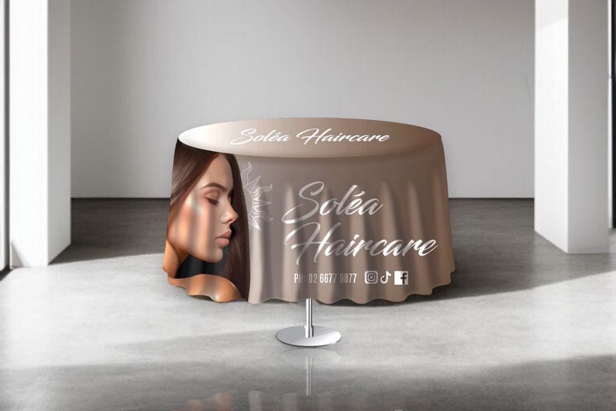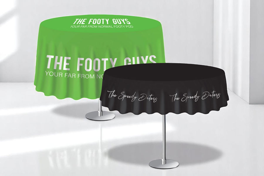 Our Round Table Throws provide high impact, low cost branding for your events or displays. They are custom printed in high resolution, full colour and are suitable for use on most sized tables with either a full or half drop. Our Round Table Throws are a great way to turn a basic table into a professional advertising tool and promote your business to potential customers!