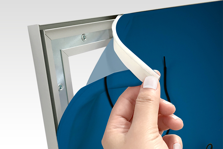Our SEG Fabrics come with a silicone edge which simply slips into the cavity in your Backlit or Frontlit frame. If you want to change the graphic, just order another fabric, slip the old one out and the new one in!